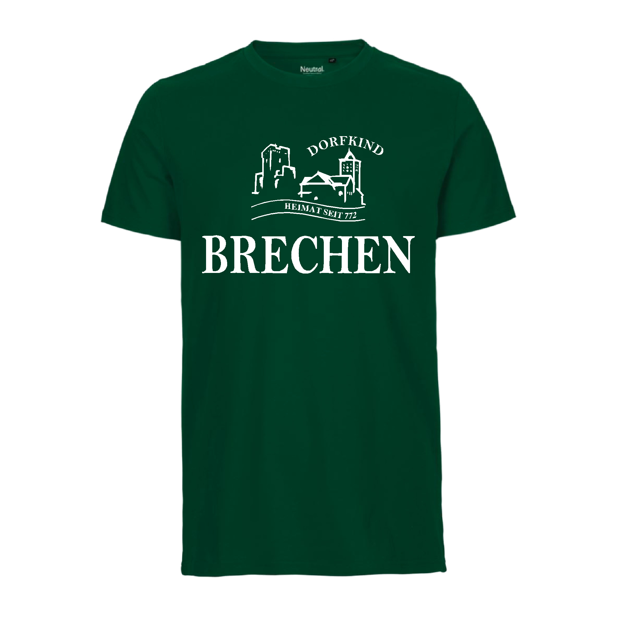 Herren Bio T-Shirt mit Aufdruck "Jubiläum Brechen" in weiß. Aktuell lieferbar in den T-Shirtfarben Bottle Green und Navy. Material 100% gekämmte ringgesponnene zertifizierte Bio-Baumwolle. Ein Fair Trade Produkt aus dem Hause Neutral.
